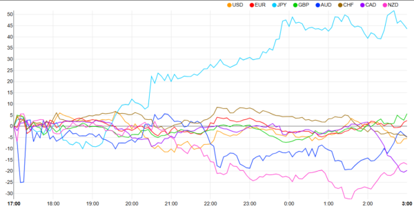 Currency Strength Chart: Strongest – Weakest – JPY, GBP, EUR, AUD, CHF, USD, NZD, CAD –
