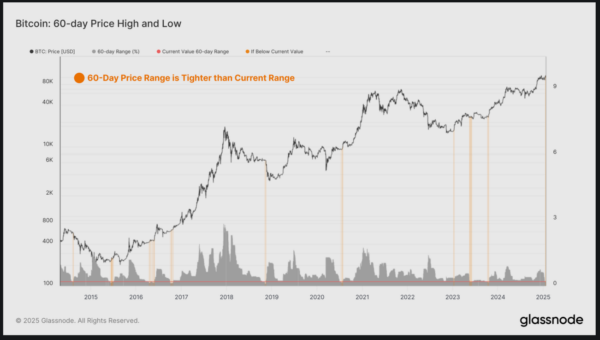 Glassnode’s recent on-chain weekly report has shed light on interesting developments around the recent Bitcoin price action and what it could mean. According to the data, both on-chain models and the narrow 60-day price range show a strong connection, helping investors anticipate periods of increased volatility.