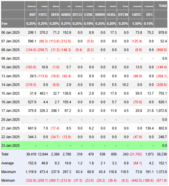 However despite flows of around $802 million on January 21 and $248.7 million yesterday Bitcoin continued its descent toward the 100k mark once more.