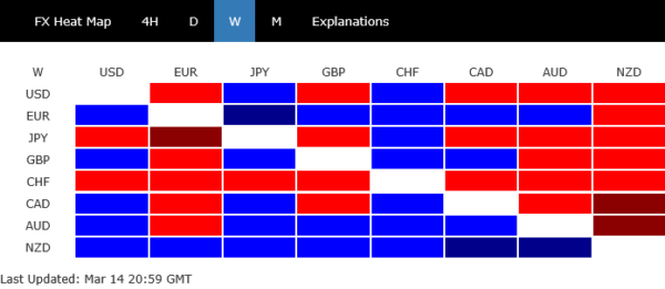 On the weaker side, Japanese Yen, Swiss Franc, and Dollar ranked as the bottom three performers. Meanwhile, Sterling and Canadian Dollar closed the week in the middle of the pack