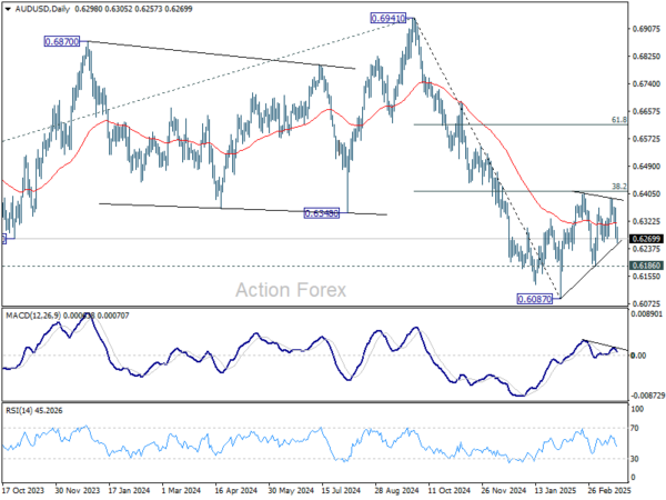 In this environment, broad-based risk appetite is likely to stay subdued. While tariff concerns may cap further upside in stocks and restrain Dollar’s rebound, traders are unlikely to make aggressive moves until more clarity emerges in early April.