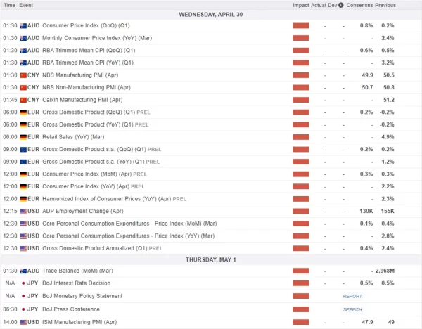 In the Pacific region we have some inflation data for Q1 being released in Australia. The RBA prefers the quarterly data as it provides a more stable view of inflationary trends. Markets expect CPI to rise due to higher food and electricity costs, even though service prices have slightly decreased.