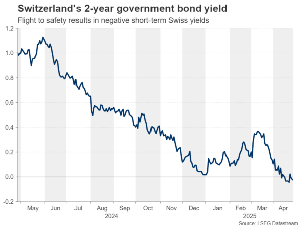 But why did the franc gain the most? Why didn’t the yen follow suit? Switzerland is considered a safe-haven destination for investors due to its strong banking and financial system, its political stability and neutrality, its trade surplus, its favourable tax laws and its strong legal system. Investors were so willing to divert their flows there that they allowed the Swiss 2-year government bond yield to drop into negative territory. This means that investors are willing to lose some money in nominal terms in exchange for the safety of their capital. The yen did not perform in a similar manner, perhaps as traders scaled back their BoJ rate hike bets amid the trade uncertainty.