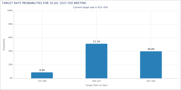 Looking ahead, July is now the more likely inflection point, though conviction is still weak. Market-implied odds for a 25bps cut in July stand at around 60%. Investors remain far from convinced a rate move is locked in.