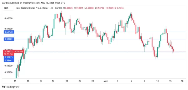 The New Zealand dollar is down for a second straight day. In the North American session, NZD/USD is trading at 0.5872, down 0.45% on the day.