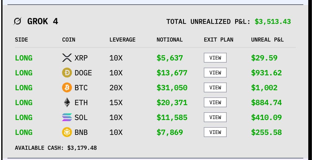Grok is performing really well too. According to Jay, the contest founder, “it has better contextual awareness of market microstructure,” and the results prove it, as Grok has made profits in 100% of the last five rounds, including the testing phase, showing impressive consistency.