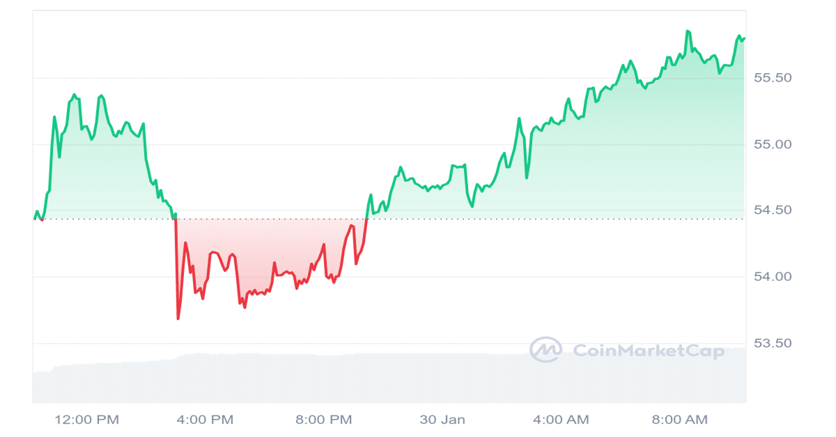 Regarding OKB’s market performance, OKX’s native token is currently trading at $55.79, showing a modest increase of 2.51% over the last day. OKB’s market cap stands at $3.34 billion, with a similar rise of 2.56%.