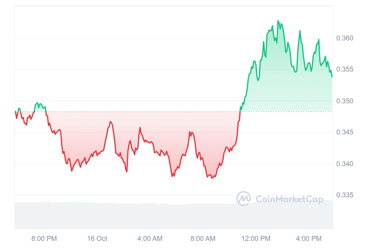 Today, the price of PYTH stands at $0.353252, reflecting a 1.89% increase over the last 24 hours. The network’s price prediction sentiment appears bullish, supported by a Fear & Greed Index score 73, indicating a market leaning towards greed. Over the past 30 days, PYTH has had 16 days where the daily close was higher than the daily open, accounting for 53% of the time.