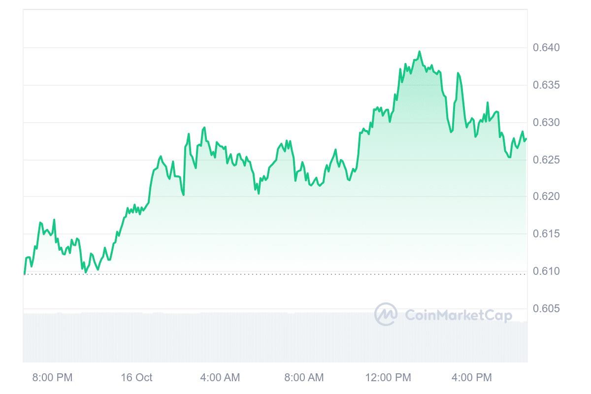 The current price of Mantle (MNT) stands at $0.624985, reflecting a 2.87% increase in the past 24 hours. Over the past year, the price has surged by 92%. In the last 30 days, Mantle experienced 19 green days, meaning the daily close was higher than the daily open 63% of the time.