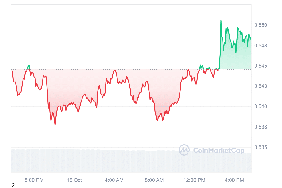 By integrating Ripple’s cryptocurrency, MoonPay continues its efforts to simplify digital asset management. XRP is priced at $0.547609, reflecting a 1.19% increase over the past 24 hours. Over the last year, the price has risen by 12%.