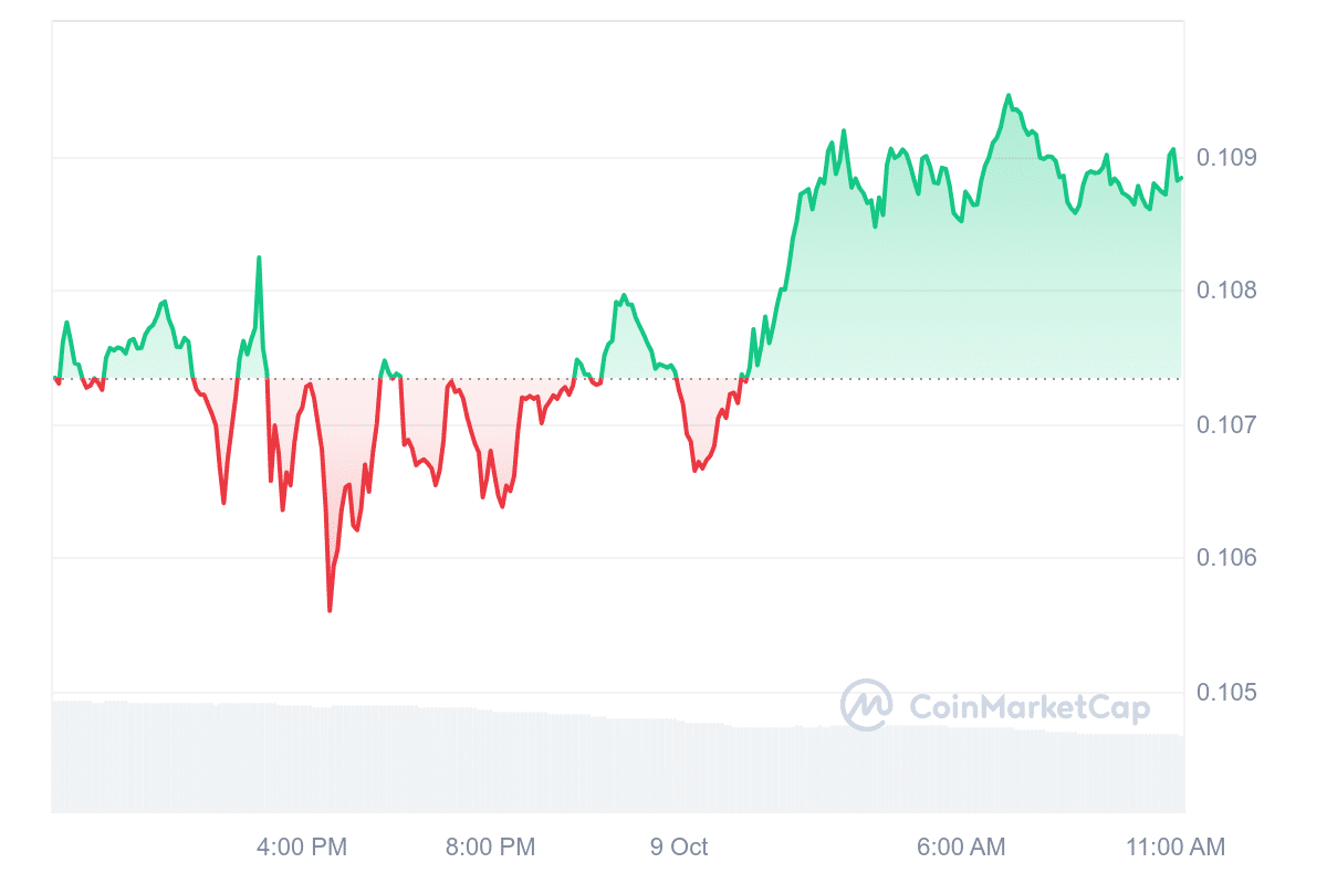Dogecoin has shown notable movement in recent times. It is priced at $0.109319 and has risen by 1.73% over the past 24 hours. Over the last year, DOGE experienced a significant 85% increase, outperforming 57% of the top 100 cryptocurrencies during the same period. This indicates a relatively strong performance compared to other assets.
