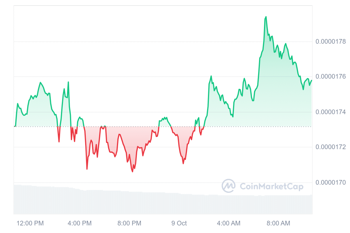 Following a recent decline, SHIB is attempting to recover its earlier losses. At the time of writing, the token has gained 1.68%, bringing its price to $0.00001765. It has also managed to break through its previous resistance level of $0.0000174, which now acts as support. This shift could signal a potential price rebound.