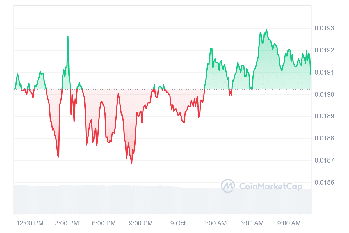 Jasmy (JASMY) has seen a modest price increase. It is valued at $0.019086 and has gained 0.12% in the last 24 hours. Over the past year, Jasmy has shown significant growth, rising by 496%. This performance places it ahead of 89% of the top 100 cryptocurrencies and outpaces Bitcoin and Ethereum during the same period.