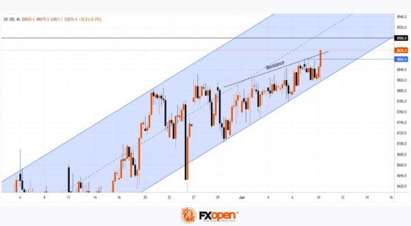 In response to the drop in employment, the UK’s FTSE 100 index (UK 100 on FXOpen) jumped sharply, rising close to the 8,900 mark — near its all-time high reached in early March this year.