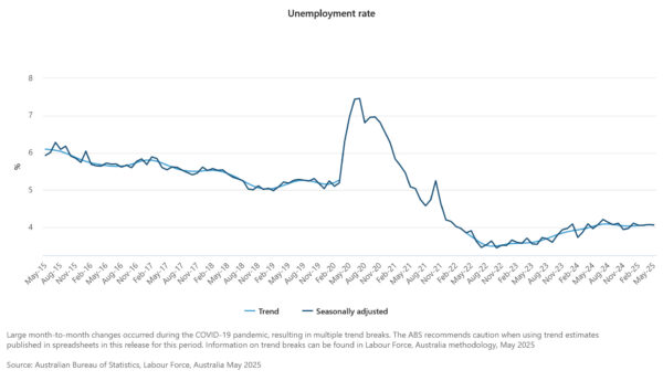 May’s Australian employment data surprised to the downside, with a -2.5k decline compared to expectations of a 19.9k gain. Yet beneath the weak headline, the composition was stronger than it appears: full-time jobs surged 38.7k while part-time jobs plunged by -41.1k.