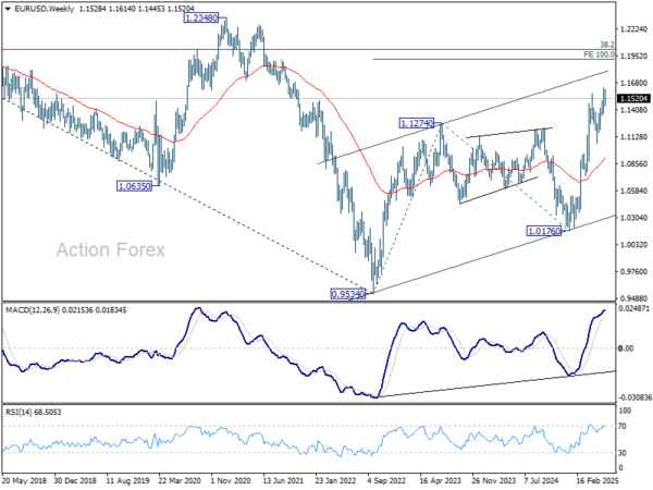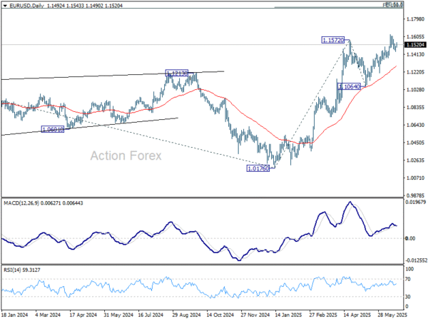 Additionally, ECB’s easing cycle is certainly nearing its conclusion, possibly with just one recalibration cut remaining. That sets it apart from central banks like BoE, which is still on a “gradual and cautious” rate reduction path, and SNB, which may be forced into negative rates again. Even Fed, which has been on pause since late 2024, may soon re-join the global easing trend once tariff-driven inflation uncertainties clear.