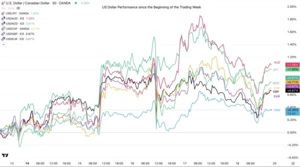 US Dollar Performance since the Beginning of the Trading Week, July 18, 2025 – Source: TradingView