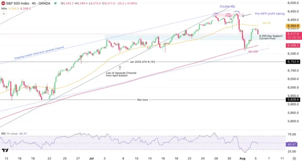 S&P 500 4H Chart, August 5, 2025 – Source: TradingView
