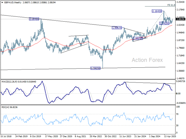 Looking longer-term, the uptrend from 1.5925 (2022 low) remains intact. On resumption, next medium term target is 61.8% projection of 1.8909 to 2.1643 from 2.0420 at 2.2110.
