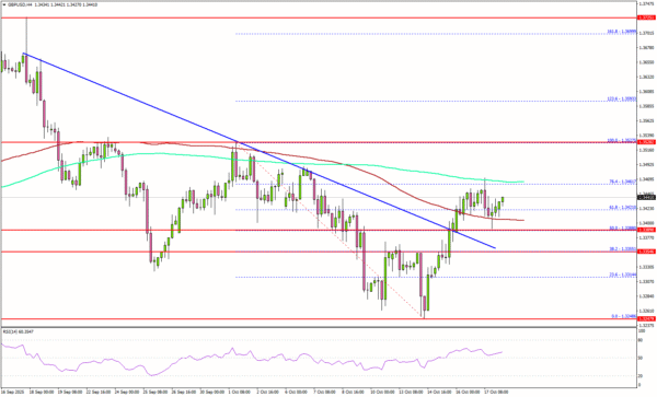 - GBP/USD started a recovery wave above 1.3400 but faces hurdles.
