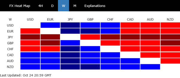 In currency markets, commodity-linked currencies led the way — with Kiwi, Aussie and Loonie as the top performers — reflecting a renewed global appetite for risk. Yen, by contrast, weakened sharply, while Sterling and Swiss Franc also softened. Dollar and Euro finished the week in middle positions.