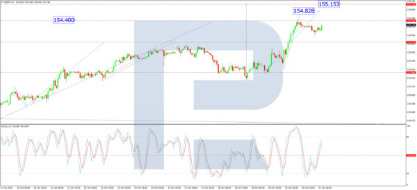 On the H1 chart, the market completed an initial growth wave to 153.33, formed a tight consolidation range, and then broke upwards to achieve its local target of 154.40. Following this peak, a pullback towards at least 153.33 is anticipated. Upon finding support, the next upward wave is expected to target 154.83, with the potential to extend the broader bullish trend towards 155.15.