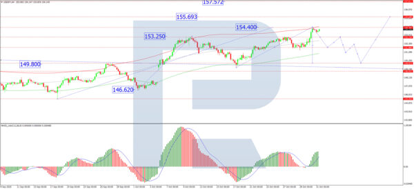 On the H4 chart, USD/JPY has completed a bullish wave structure, reaching 154.40. The pair is now likely to enter a period of consolidation at these highs. A decisive downward breakout from this range would signal the start of a correction, with an initial target at 151.88. Conversely, an upward breakout would open the path for the next leg of the rally towards 155.70.