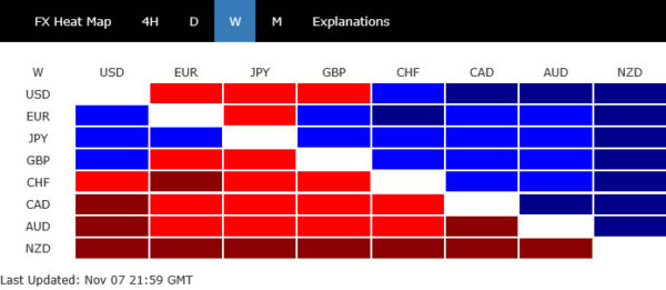 Euro and Sterling rounded out the top three performers, helped by a slightly softer Dollar. BoE narrowly avoided easing in a tense 5-4 vote, but rate cut is still underway after getting more details from the U.K. government’s Autumn Budget later this month. Dollar and Swiss Franc ended in the middle of the pack.