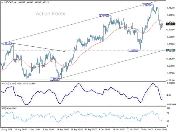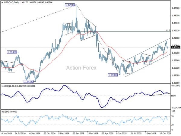 Daily Pivots: (S1) 1.3996; (P) 1.4027; (R1) 1.4053; More