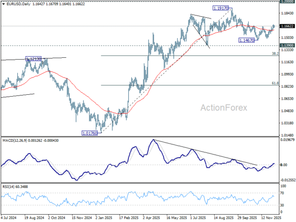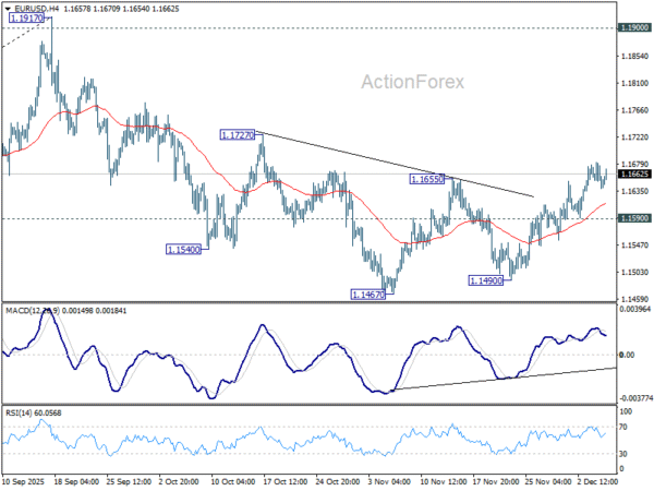 Daily Pivots: (S1) 1.1629; (P) 1.1656; (R1) 1.1670; More….