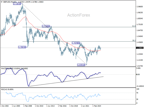 In the bigger picture, current development suggests that fall from 1.3787 is merely a corrective move, and larger rise from 1.0351 (2022 low) is still in progress. Firm break of 1.3787 will target 1.4248 (2021 high) key structural resistance. This will remain the favored case as long as target 38.2% retracement of 1.0351 to 1.3787 at 1.2474 holds, in case of another fall.