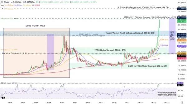 Silver (XAG/USD) Monthly Chart. December 17, 2025 – Source: TradingView