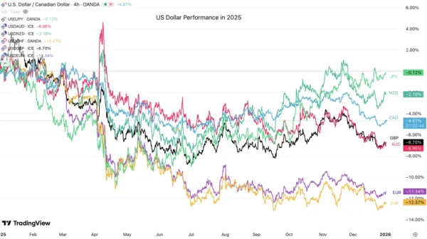 Performance of other currencies against the US Dollar in 2025 – Source: TradingView