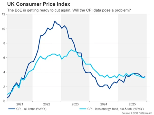 Next up is the CPI report on Wednesday. Headline CPI disappointingly edged up to 3.4% y/y in December while the core rate held steady at 3.2% y/y. Should CPI resume its decline in January, the pound is likely to come under pressure, as rate cut bets for the next BoE meeting in March would get a lift, pushing the odds of a 25-bps reduction above the current 64%.