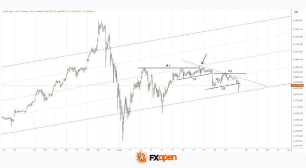 Indeed, from 9 to 12 February the market formed a consolidation zone slightly above $5k — more precisely, between resistance R1 and local support S1.