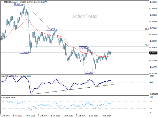 In the bigger picture, as long as 1.3008 support holds, rise from 1.3051 (2022 low) should still be in progress for 1.4284 key resistance (2021 high). Decisive break there will add to the case of long term bullish trend reversal. However, firm break of 1.3008 will raise the chance of medium term bearish reversal and target 1.2099 support next.
