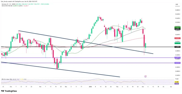 The DAX selloff saw the index drop below the psychological 24000 handle for the first time since December 2025.