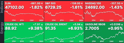 There goes risk-appetite, as a close to 10% rise in daily WTI prices will keep raising inflation expectations and that tends to coincide with major repricings in Equity markets