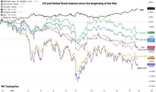Global Weekly Index Performance – Source: TradingView – March 13, 2026