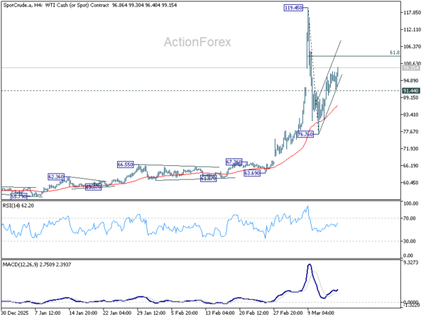 That said, any decisive acceleration above 103.14 would be a warning signal that the consolidation has ended. Such a breakout could trigger a renewed rally through 119.45 peak, especially if supply disruptions in the Middle East persist.