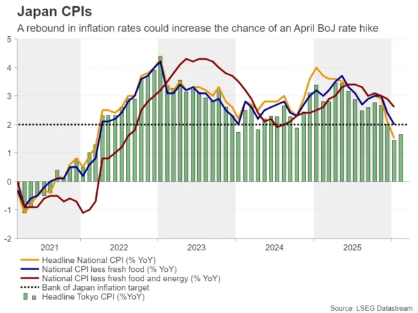 In Japan, BoJ officials also decided to remain sidelined on Thursday, but they appeared concerned about the impact of surging oil prices on underlying inflation. Board member Takata repeated his proposal to raise rates up to 1.0%, while another hawk joined him to dissent the view that inflation will durably hit 2% sometime after October, arguing that this could happen as soon as April. On top of that, Governor Ueda said he believes the outcome of this year’s spring wage negotiations may be better than previous years.