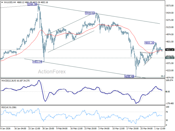 Technically, near-term bias is mildly on the upside as long as 4,482.53 minor support holds. Firm break of 4,800.26 would resume the rise from the 4,098.45 short term bottom, confirming that momentum is rebuilding.