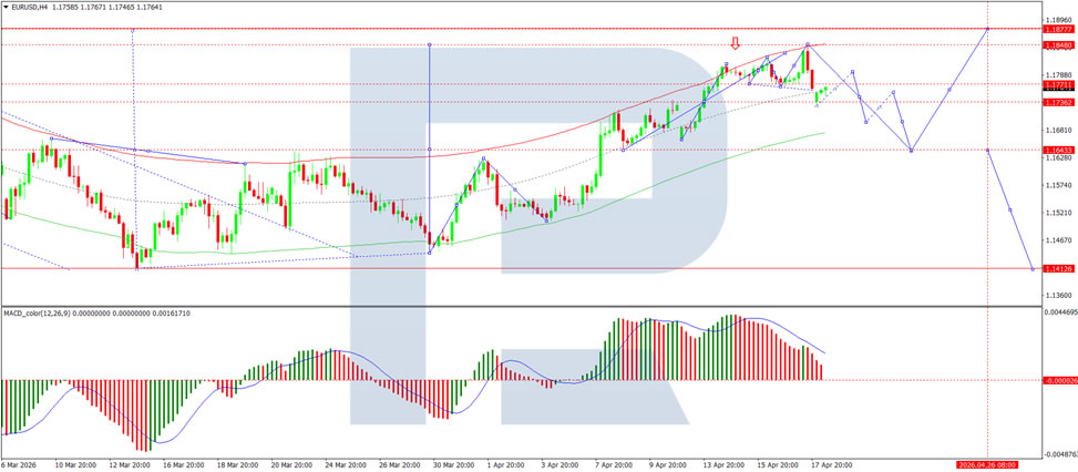 On the H4 chart of EUR/USD, the market is forming a consolidation range around the 1.1800 level, currently extending down to 1.1737. An upward wave to 1.1790 is likely. Subsequently, a downward wave to 1.1700 could develop. Technically, this scenario is confirmed by the MACD indicator, with its signal line above the zero level but pointing firmly downwards, reflecting continued bearish momentum with the potential for the downward trend to persist.