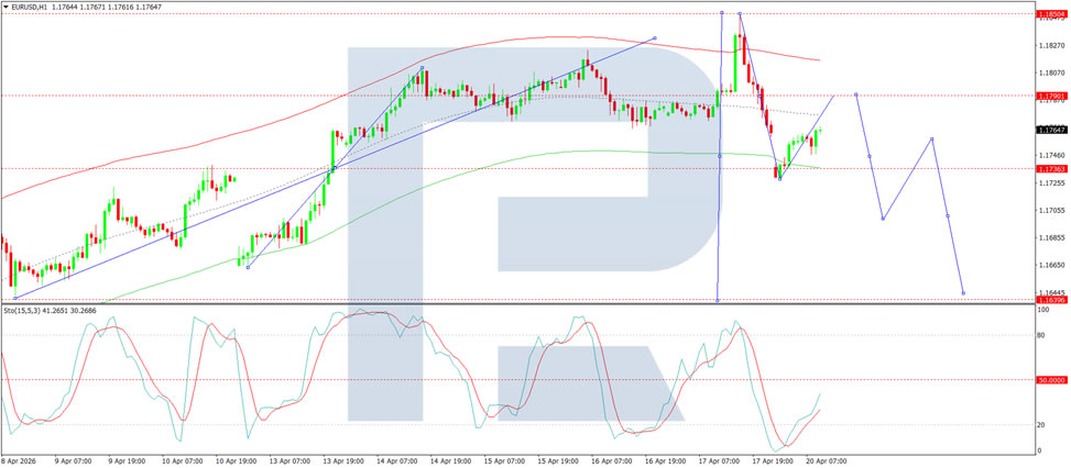 On the H1 chart, the market is forming the structure of the next upward wave to the 1.1790 level. After reaching this level, a correction to 1.1700 is likely, followed by a possible rise to 1.1745. Technically, this scenario is confirmed by the Stochastic oscillator, with its signal line below 50 and pointing firmly upwards towards 80.