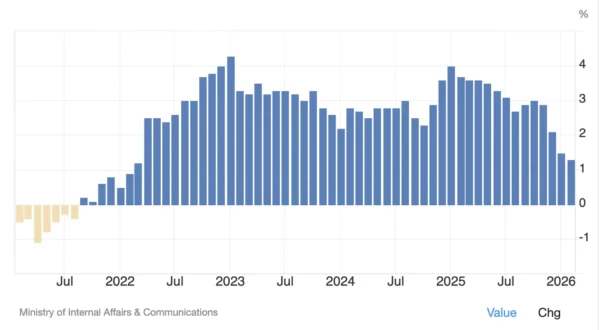 Recent Japanese CPI data – Courtesy of Trading Economics