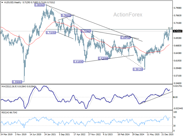 In the bigger picture, rise from 0.5913 (2024 low) is still in progress. Decisive break of 61.8% retracement of 0.8006 to 0.5913 at 0.7206 will solidify the case that it’s already reversing the down trend from 0.8006 (2021 high). Further rally should then be seen to retest 0.8006. For now, outlook will remain bullish as long as 0.6832 support holds, in case of pullback.