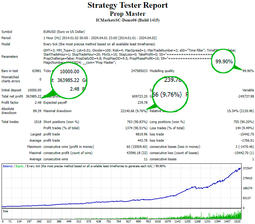 All these statements indicate that the Prop Master Expert Advisor is suitable for passing the Prop Firms Challenges. For the successful passing of the challenges, the Prop Controller module is built into the Expert Advisor, which makes it even more attractive for traders who trade on funded accounts of Prop Firms. (Have a look at the post: Prop Controller is the key to success for passing the Challenge)