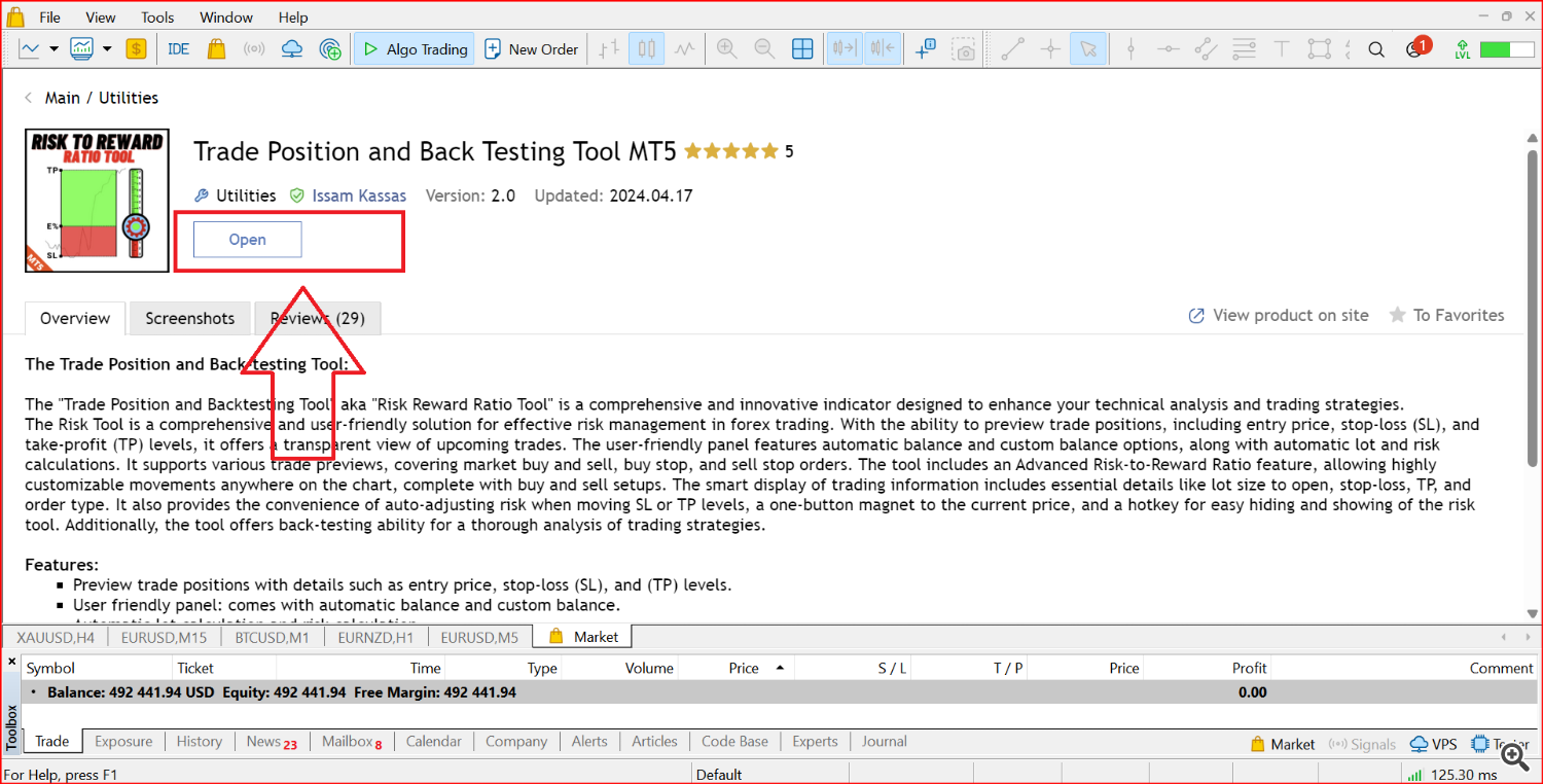 - Step 5: Click the open button, this will open the product in your mt4/mt5