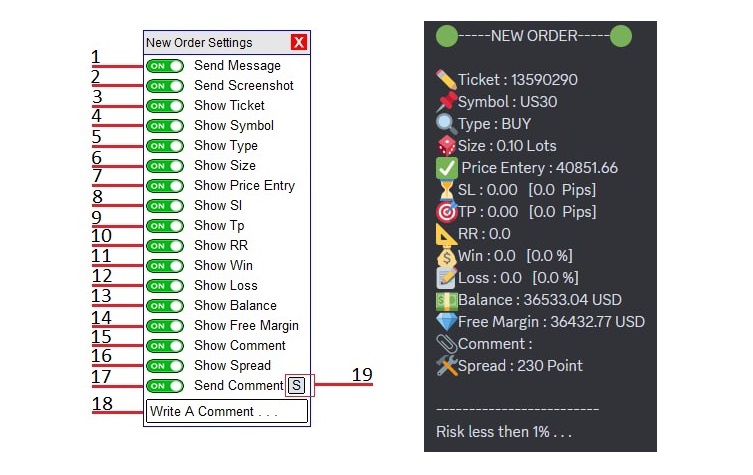 MT5 To Discord Channel is an easy-to-use and customizable tool. This product is presented in an attractive graphical interface that allows you to send adjustable signals in two ways (Manual or Automatic) from Metatrader5 to the Discord channel. In this case, your account becomes a Signal Provider.