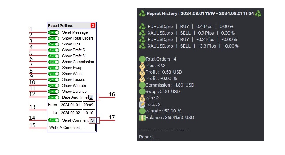 - Send the history report Pips (Total Orders)